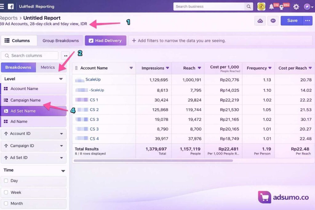 Dari sisi Meta sendiri, Ads Reporting memang dibuat supaya kamu bisa membuat, mengustomisasi, mengekspor, membagikan, bahkan menjadwalkan laporan performa iklan berdasarkan parameter yang kamu pilih.