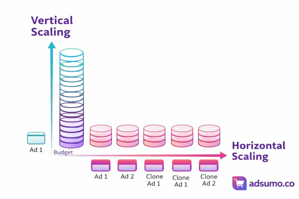 Keunggulannya: kamu bisa memperbesar volume tanpa “membebani” satu ad set yang sama terus-menerus. Banyak panduan scaling menyarankan pendekatan ini untuk memperluas jangkauan sambil membatasi risiko.